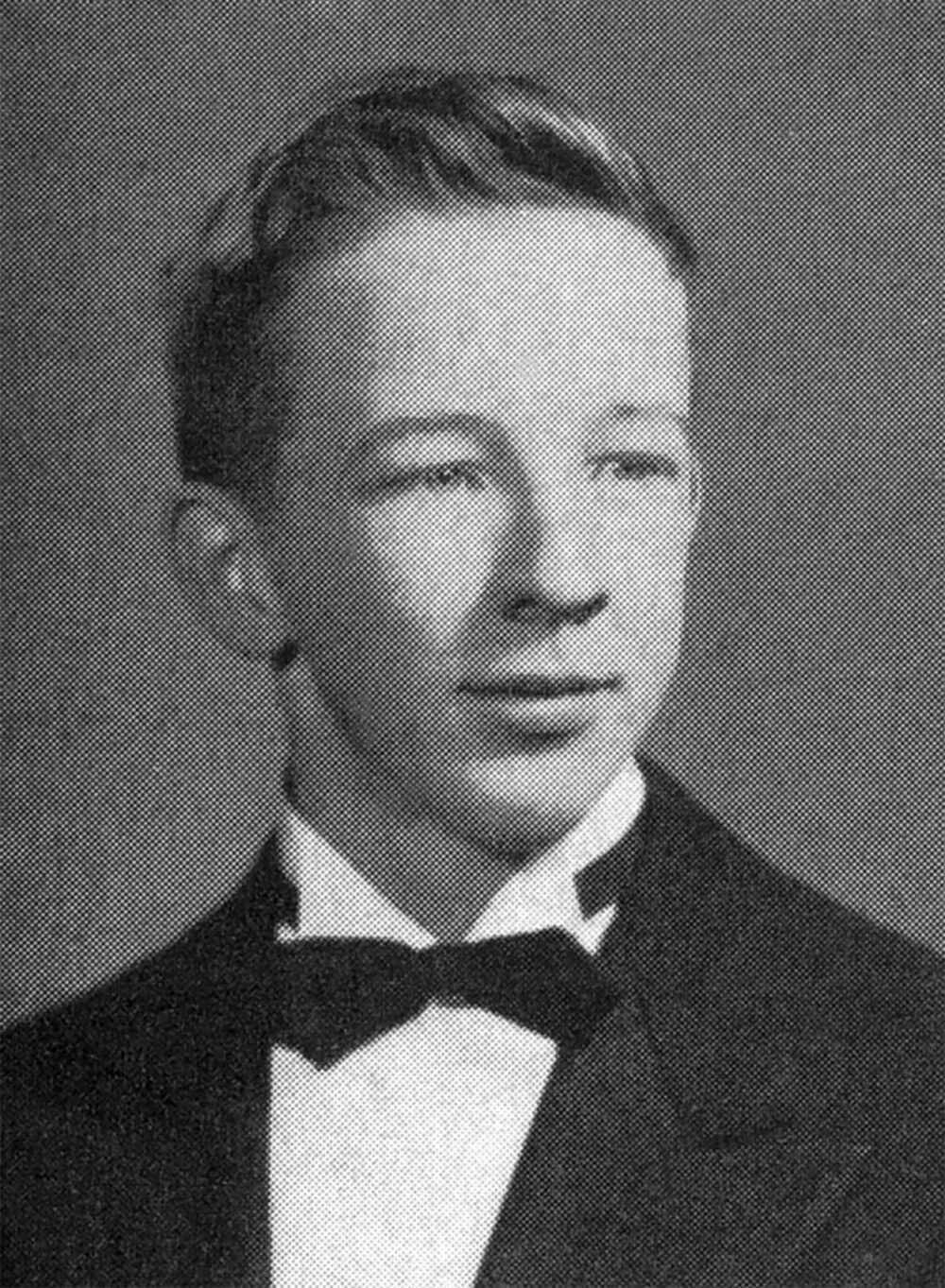 A black and white headshot of a young white man in uniform. He is looking to the side.