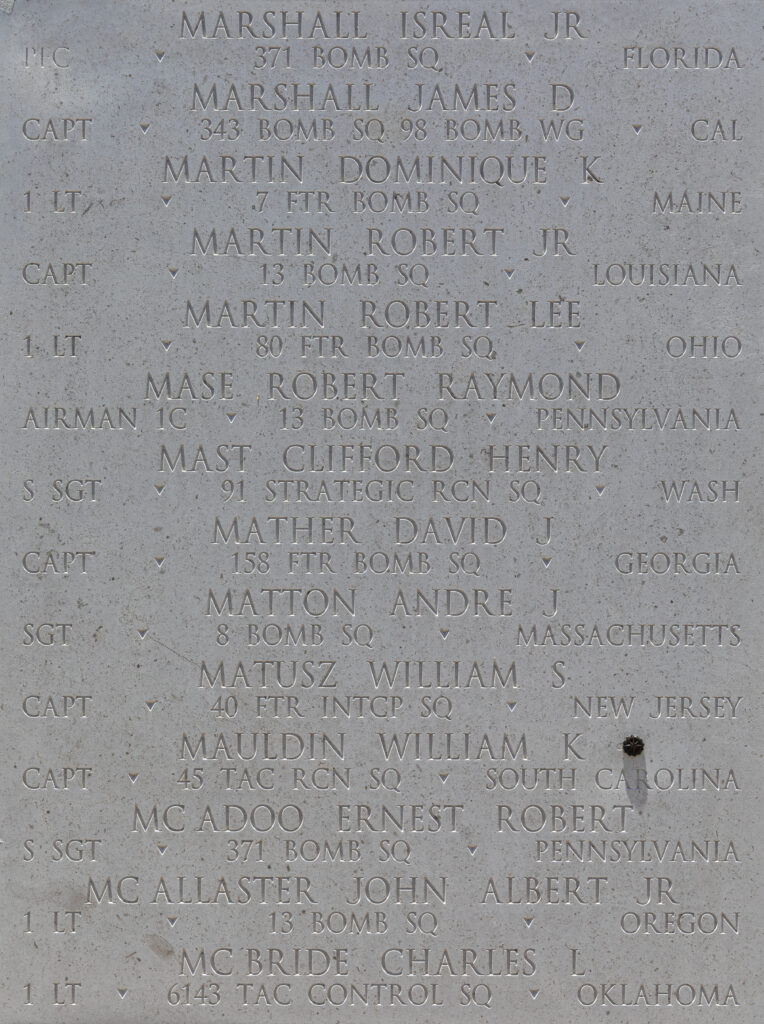 Clifford Henry Mast’s name is engraved on the Honolulu Memorial at the National Memorial Cemetery of the Pacific in Honolulu, Hawai‘i, 2026. Courtesy of the American Battle Monuments Commission.