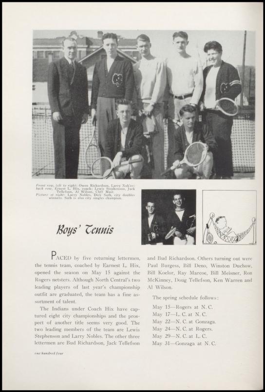 Clifford Mast in the Boys Tennis Team picture. North Central Spokane High School yearbook, 1944.