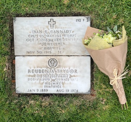 On December 14, 1987, Ivan Caldwell Cannady Jr. passed away at the age of 70 after an extended battle with cancer. He is buried at Los Angeles National Cemetery in Los Angeles, California, with his wife Jewell, mother, Beatrice Taylor, and stepfather, Reuben Taylor. Mr. Cannady is remembered for his service to the Montford Point Marines and his contributions to the Civil Rights Movement through his fight against housing discrimination.