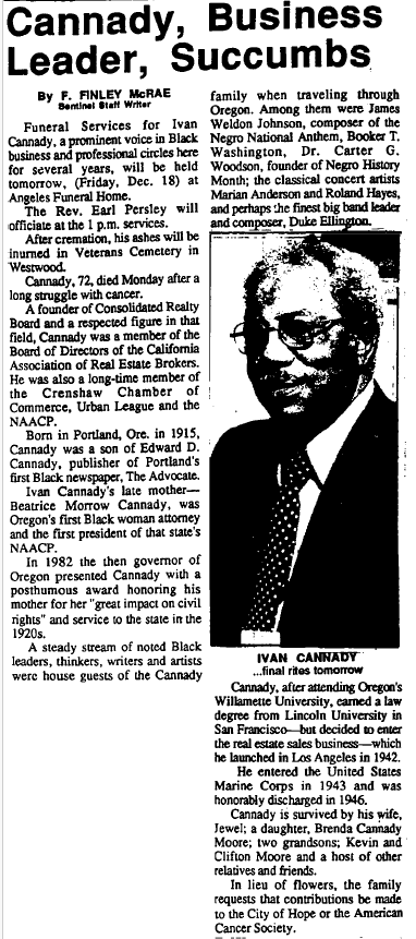 On October 7, 1915, Ivan Caldwell Cannady was born to Beatrice Morrow Taylor and Edward Daniel Cannady in Portland, Oregon. He grew up along the Willamette River, raised by a mother who founded Portland’s first branch of the National Association for the Advancement of Colored People (NAACP) and a father that founded The Advocate, Portland’s second oldest Black newspaper. Ivan and his older brother, George Cannady, challenged racial expectations throughout their childhood.