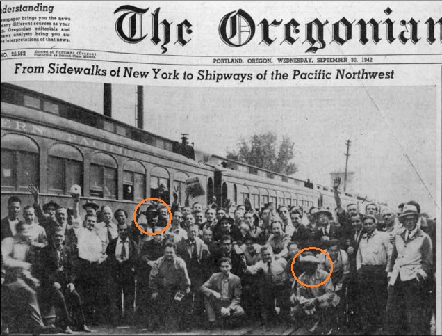 in the Kaiser shipyards. 39 of those recruits were Black. A photograph of the “Kaiser Karavan” train was published on that day in The Oregonian newspaper (circles added).