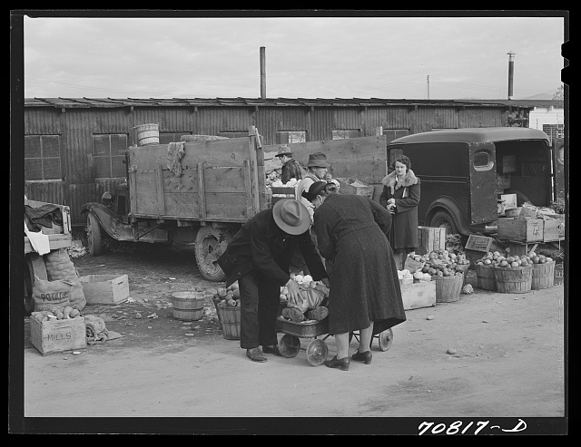 Lee, Russell. [Untitled photo, possibly related to: Farmers’ market. Boise, Idaho]. Photograph. November 1941. Library of Congress (2017816356). https://www.loc.gov/item/2017816356/.