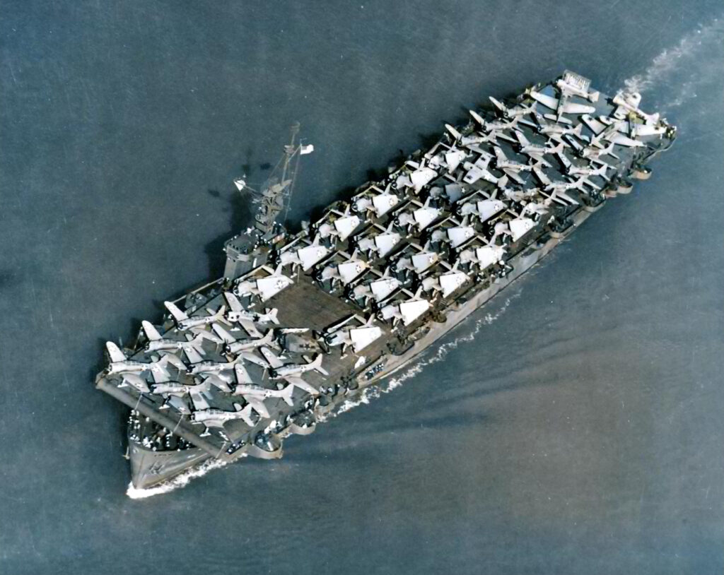 On November 24, 1943, many squadron members had already taken their stations or climbed into the cockpits of their aircraft, preparing for the dawn patrol launch. The ship’s cooks were preparing Thanksgiving turkeys for the day. Just five minutes after the crew sounded general quarters, a lookout on the starboard gallery spotted a torpedo wake heading directly for the ship.