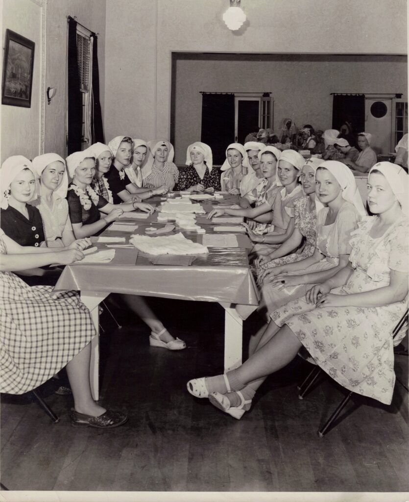 Young Women Rolling Bandages. Photograph. 1939. Nielsen Dowell Collection, Mesa Historical Museum (2004.014.002). https://mesamuseum.pastperfectonline.com/photo/F28555CF-598B-4ADD-9ADE-492120411229.