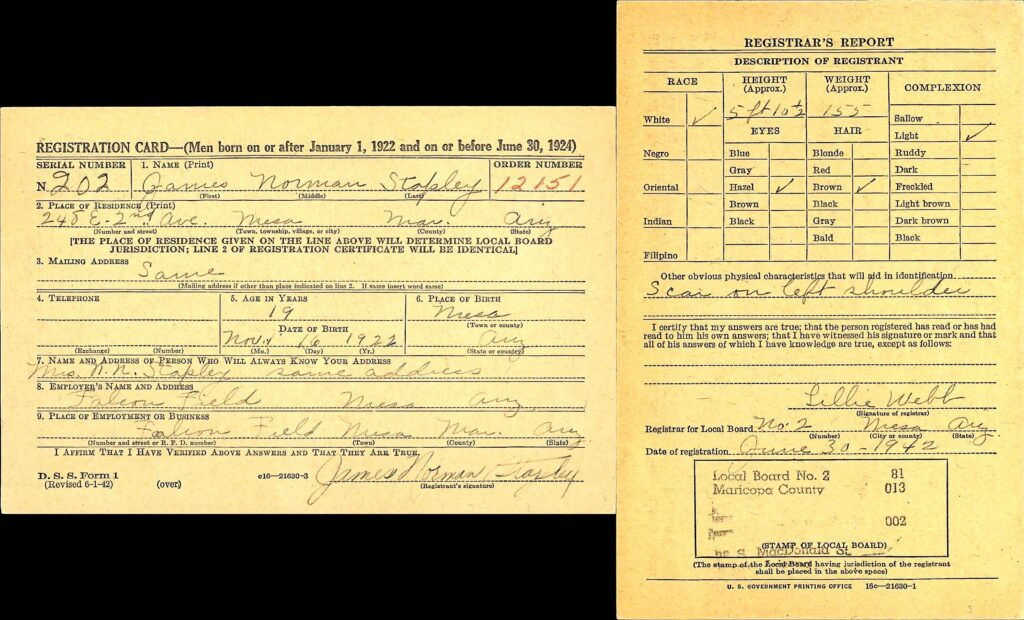 James Norman Stapley. Arizona, World War II Draft Registration Cards, 1940–1945. https://.familysearch.org/.