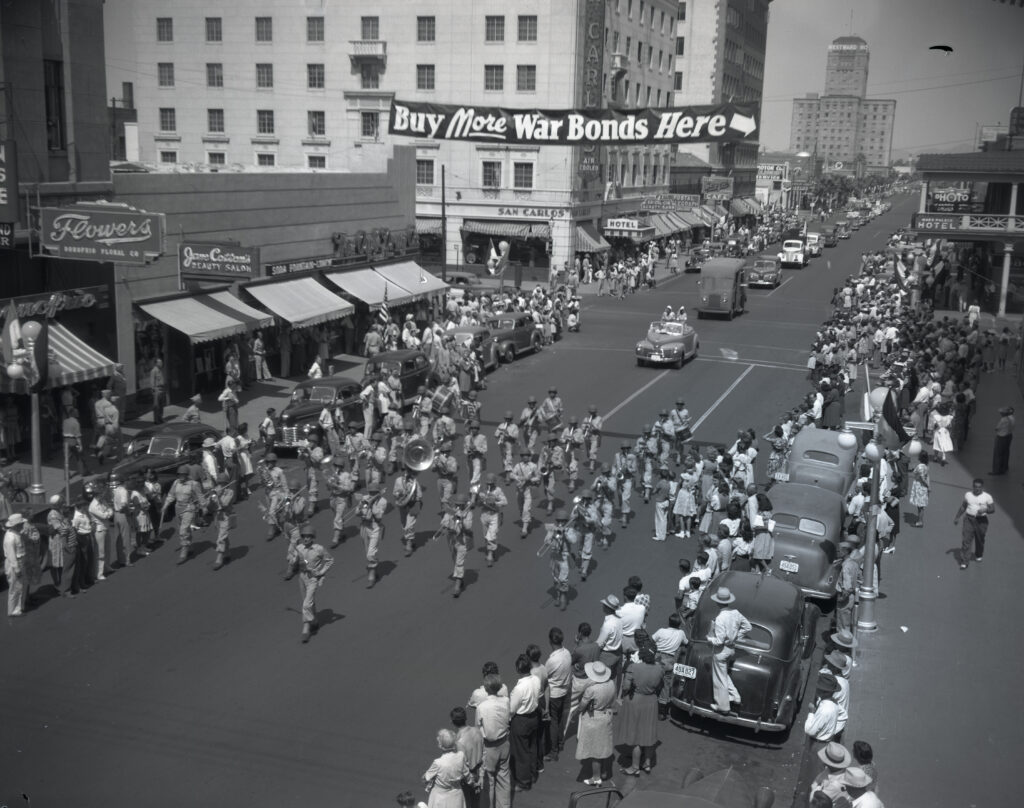 McCulloch Bros. War Bonds Parade. Photograph. September 16, 1943. McCulloch Brothers Inc. Photograph Collection, Arizona State University Libraries (CP MCLMB A1687J). https://prism.lib.asu.edu/node/30905.