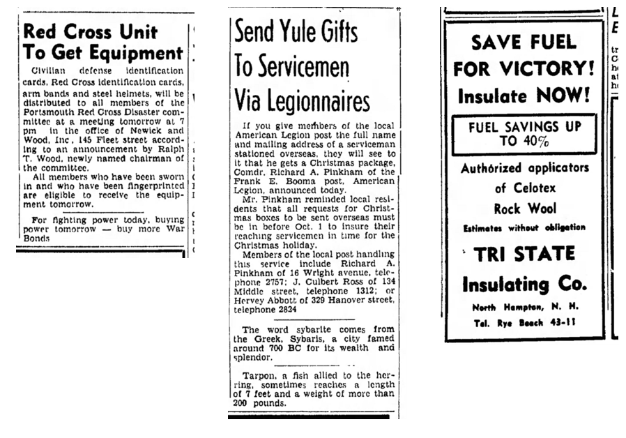 “Send Yule Gifts to Servicemen Via Legionnaires.” The Portsmouth Herald [Portsmouth, NH], September 09, 1943. Newspapers.com (61063108).