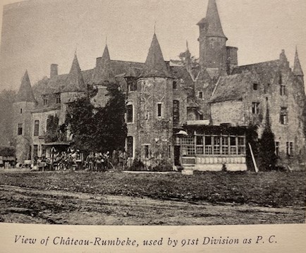 Lambert explained that he was working as a clerk away from the battlefield in an old Belgian château. The 91st Infantry Division had a command post at Château-Rumbeke near Ypres-Lys. From there, Lambert wrote: